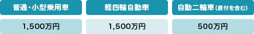 (自動二輪車及び原動機付自転車は1名につき500万円が限度です。)